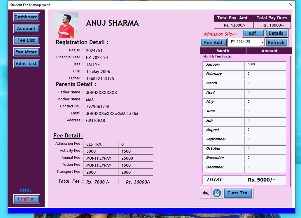If anyone wants to buy this software then please call or message me. All management of the school can be done at one place. If you want it for trial then you will get it anyway.
